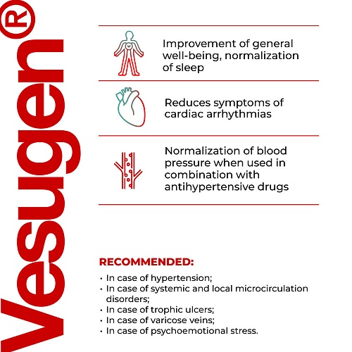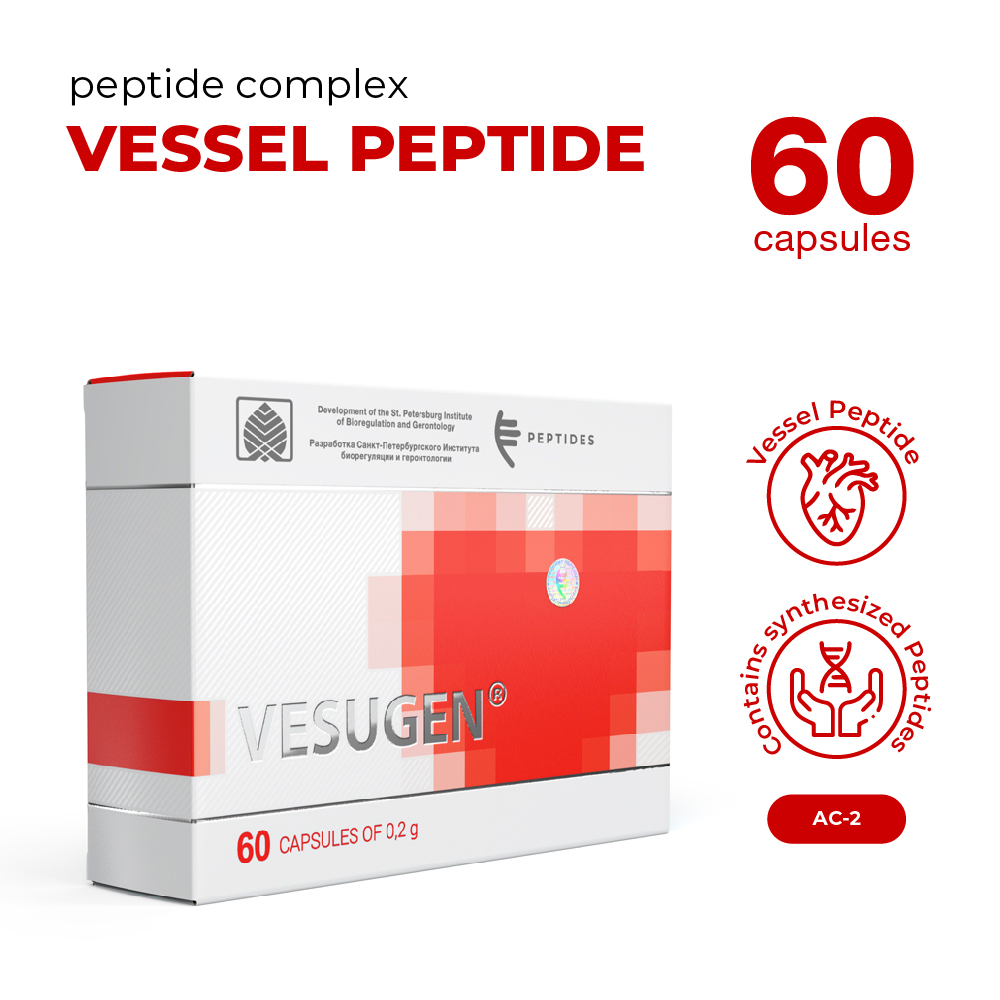 'Vesugen' stellt einen Komplex aus kurzen Peptiden dar, der die Wiederherstellung von Geweben und die Normalisierung des Funktionszustands von Gefäßen fördert.