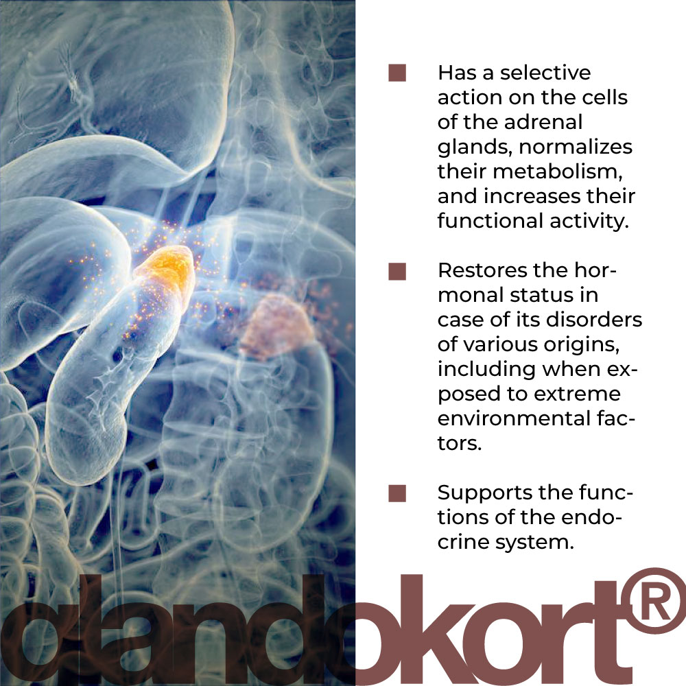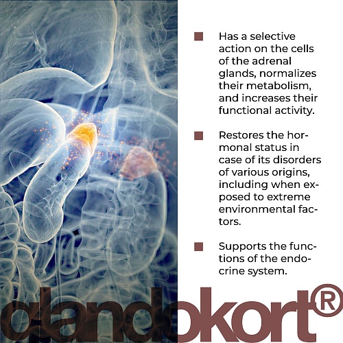 Die Wirksamkeit von Glandokort® lingual wurde in klinischen Studien nachgewiesen. Es ist wirksam zur Wiederherstellung des Hormonstatus bei Störungen unterschiedlicher Genese, unter dem Einfluss äußerer Umweltextremfaktoren, längerer Einwirkung von beruflichem oder psychoemotionalem Stress, Unterernährung und im Alter zur Aufrechterhaltung der Funktion des endokrinen Systems.