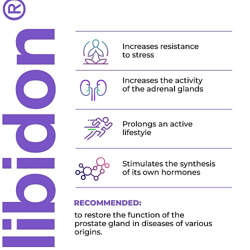 Die Wirksamkeit des Nahrungsergänzungsmittels Libidon lingual wurde in klinischen Studien bestimmt. Es ist wirksam zur Wiederherstellung der Prostatafunktion bei Erkrankungen unterschiedlicher Genese, einschließlich gutartiger Prostatahypertrophie, Prostataadenom, chronischer Prostatitis, und bei Männern in höheren Altersgruppen zur Aufrechterhaltung der Funktion des Fortpflanzungssystems.