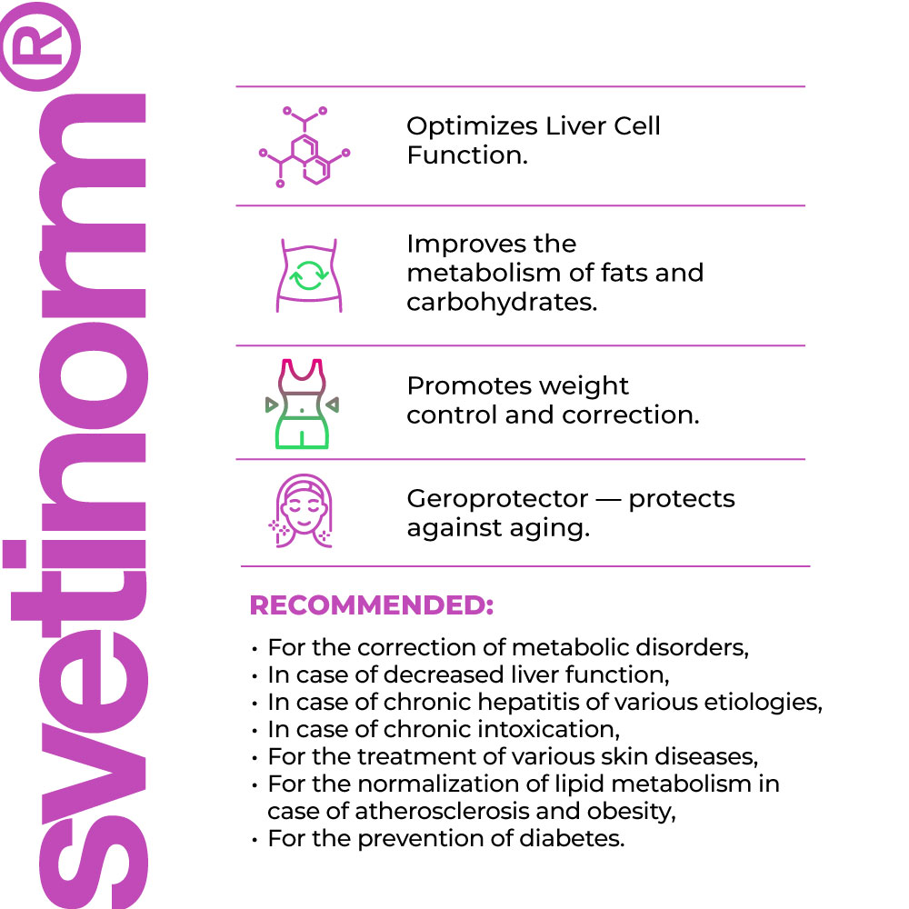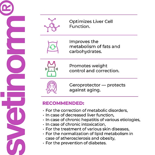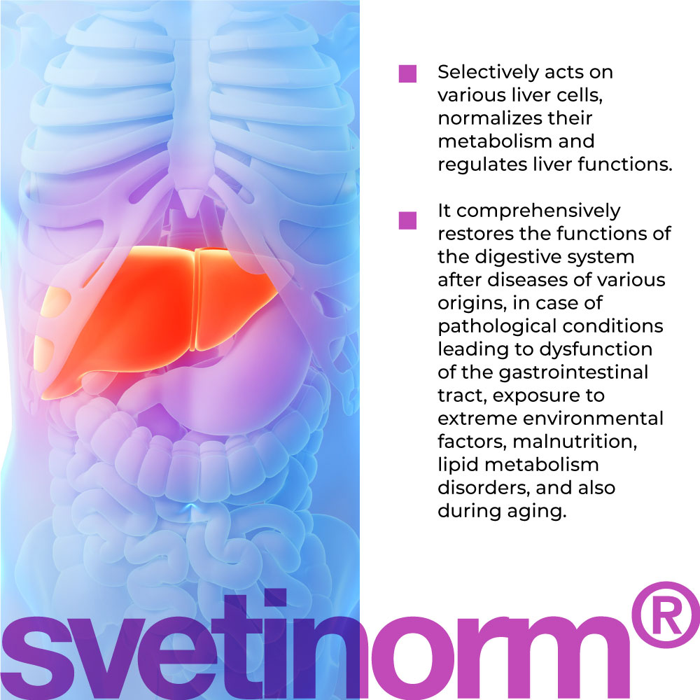 Die Wirksamkeit von Svetinorm lingual Nahrungsergänzungsmittel wurde in klinischen Studien bestimmt. Es ist wirksam bei der komplexen Wiederherstellung der Funktionen des Gastrointestinaltrakts nach Erkrankungen verschiedener Genese, bei pathologischen Zuständen, die zu einer Dysfunktion des Verdauungstrakts führen, bei Einfluss äußerer Umweltextremfaktoren, Unterernährung, Störung des Fettstoffwechsels und beim Altern.